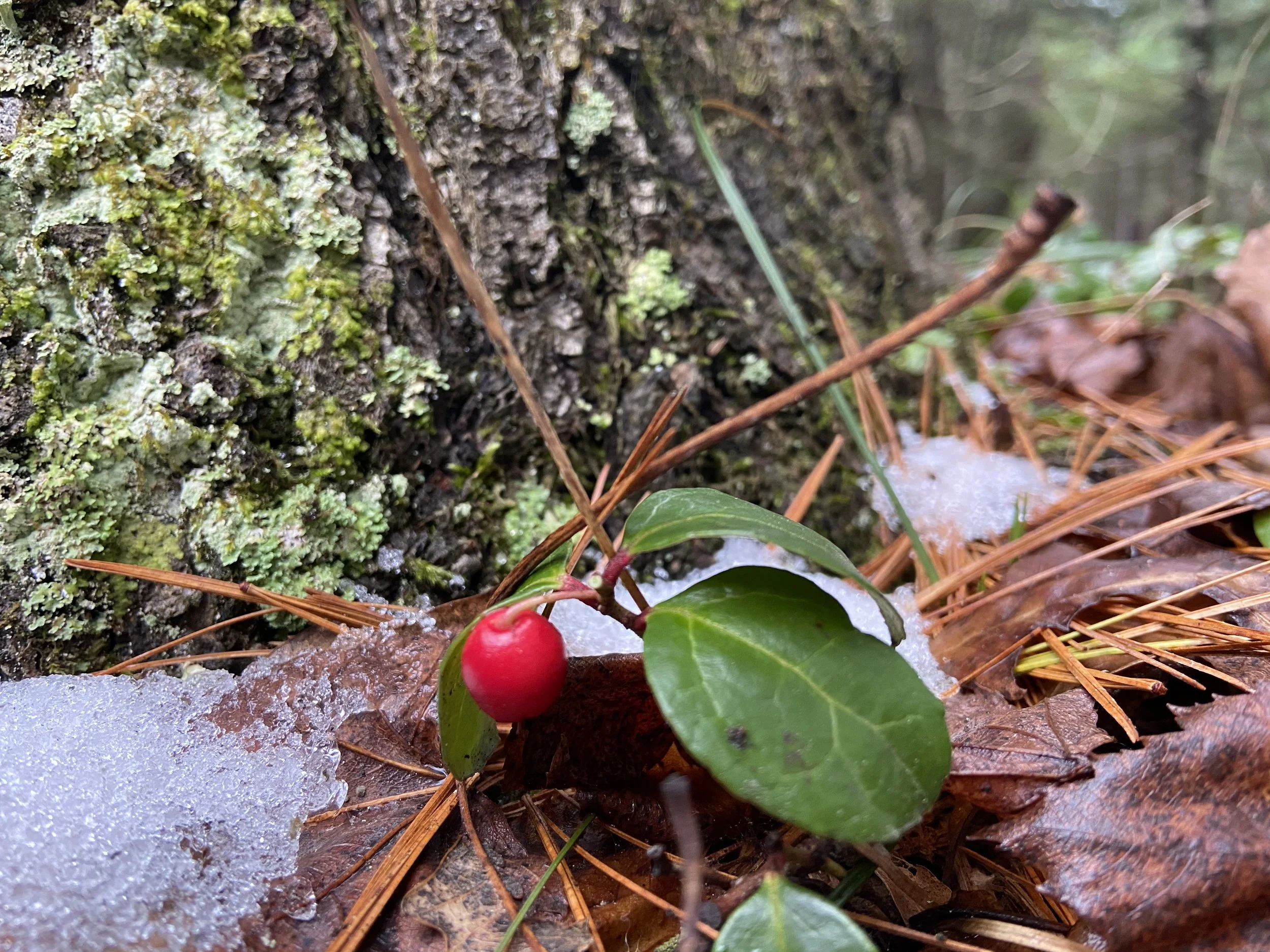 Finding Wintergreen under the snow can pose a challenge if you have never looked for this plant before. Because I spend so much time out in the woods I often know exactly where to brush the snow aside in order to get to these tasty leaves and berries! My suggestion to you would be to find a forest near you (assuming you are in this plants native range) with its favorite associates, which include but are not limited to, Pines, Birches, Balsam Fir, Hemlock, Aspen, and Oaks. If you are feeling particularly adventurous just start moving snow aside in random places and you will potentially hit the jackpot! If not then make sure you find some in the warmer weather and mark your spots with sticks you’ll recognize or the new fangled way with your handheld supercomputer!